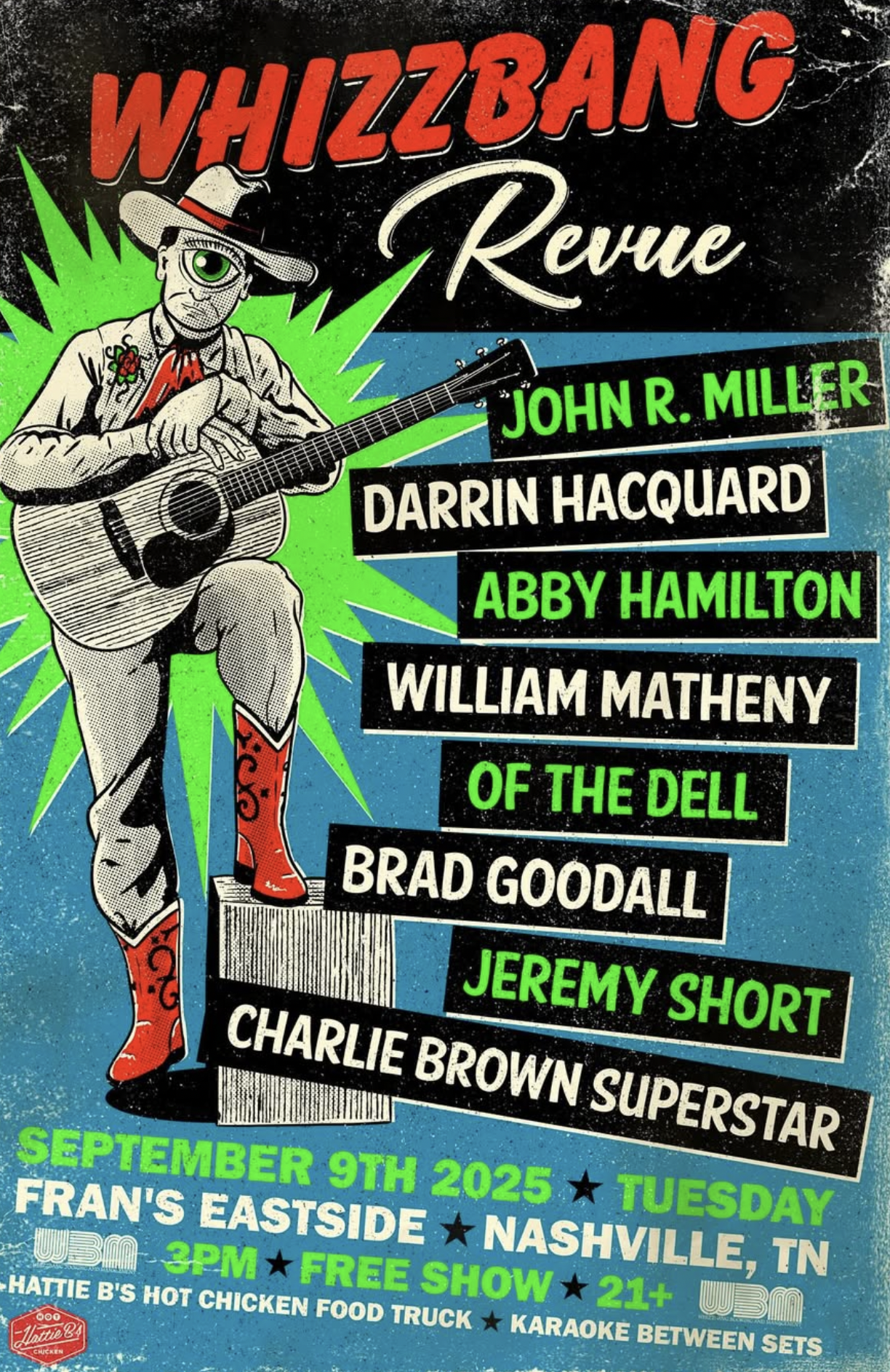 On the first official day of the festival (i.e. today) I think the spot to be during the day is the Whizzbang Review over at Fran's Eastside, starting at 3 p.m. Make sure to stay for Abby Hamilton and John R. Miller in particular, two newsletter favorites. Then I'd hop over to Dee's for the Old Fashioned String Band Throwdown or Olivia Management & Friends at Gray Matters Studio (2301 Bransford Ave,) from 6-10 p.m., where you can see Aaron Lee Tasjan, Ruthie Collins, Remi Goode and more.