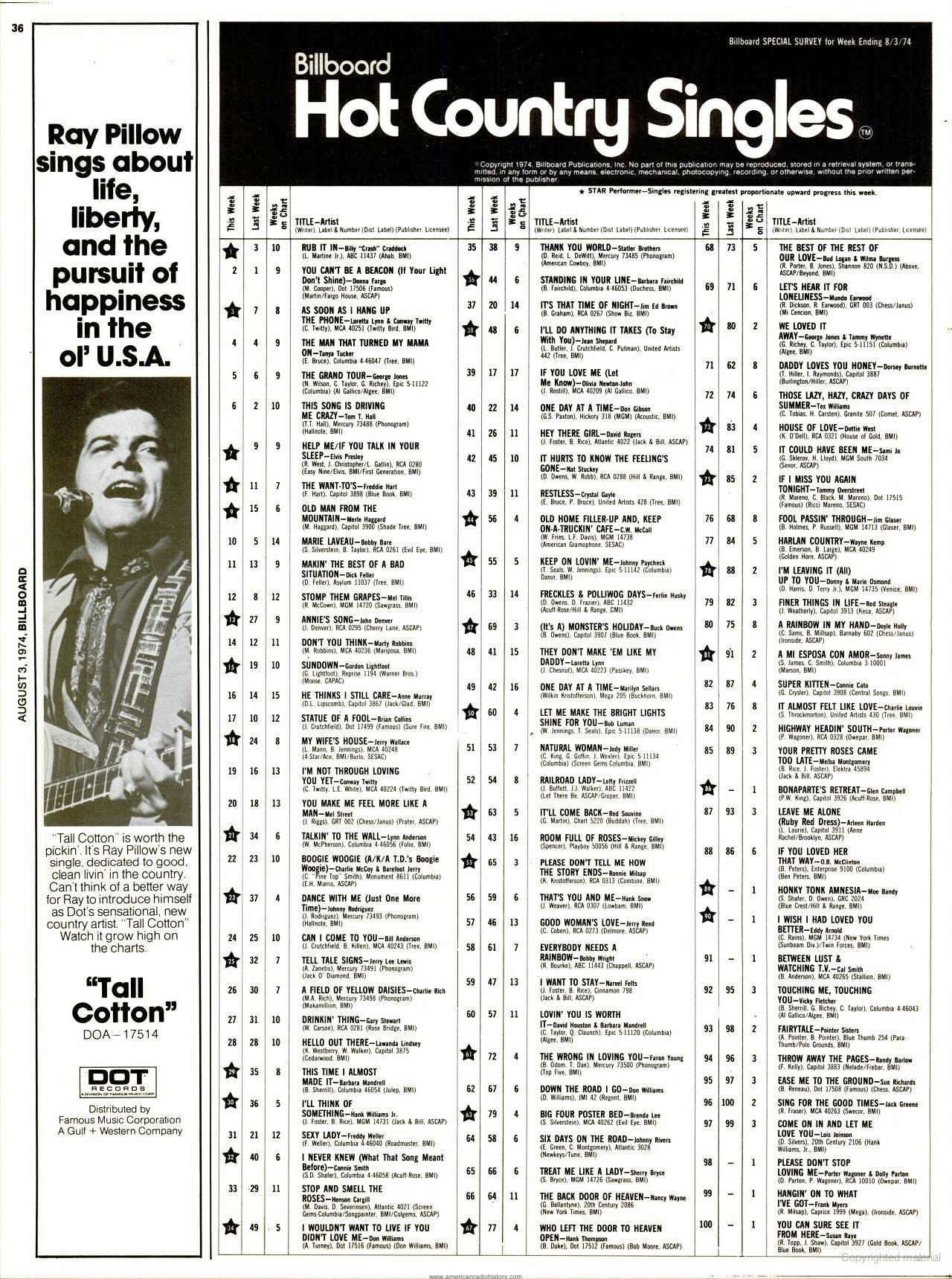 No. 1: “Rub It In,” Billy “Crash” Craddock — Is this the first beach country hit??? I had not heard this song before, that’s why we do this column. It’s got a real New Orleans feel to it (that opening riff is giving me serious Dr. John deja vu), and is certainly…something! It became the Glade jingle. Seriously. A moment for the cover:
