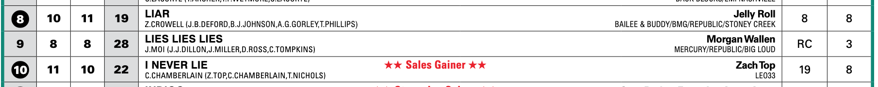 This one's on its way back down, and not a moment too soon — extremely post-Wallen in the worst way. (Unrelated, this Brantley Gilbert album cover is…something else.)